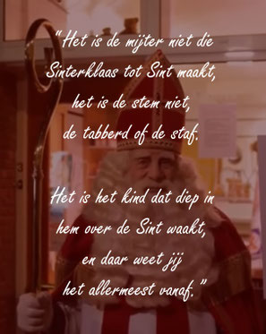 Voor mij een periode in het leven om te koesteren, het kind kind te laten zijn en het kind aan de hand van zijn fantasie mee te nemen door het Sinterklaasfeest.